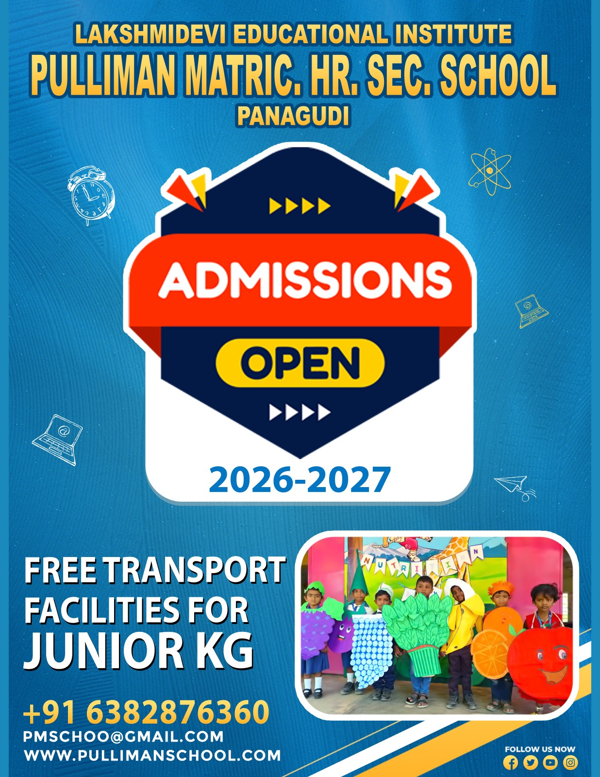 Established with the mission to empower rural and suburban children with quality education, Pulliman Matriculation Higher Secondary School is a renowned private institution located in Panagudi. Following the Tamil Nadu State Samacheer Kalvi syllabus with English as the medium of instruction, the school offers a vibrant, inclusive, and value-based academic environment.